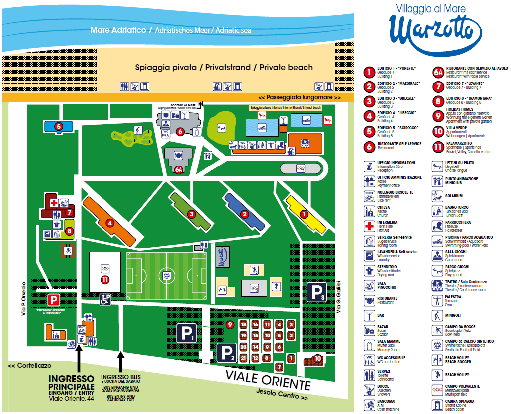 - Hébergement (4 par chambre) : Marzotto Seaside Village