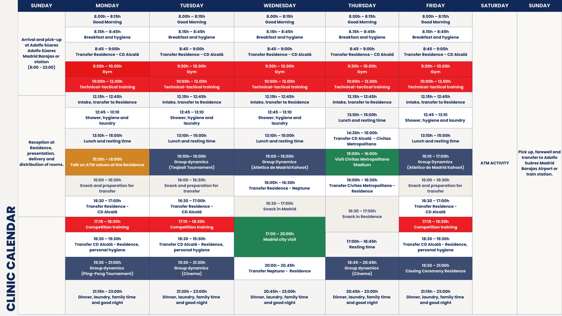 The participants will stay at the Atletico de Madrid residence, located at San Sebastián de los Reyes, Madrid.